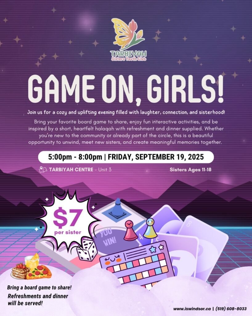 At the Islamic Society of Windsor, we are dedicated to providing enriching programs that nurture the spiritual, intellectual, and emotional growth of our sisters. Through uplifting and engaging activities, our sisters’ programs aim to strengthen bonds of sisterhood while instilling a deeper connection to our faith. Our goal is to empower women to thrive as leaders, role models, and active members of the community, all while enhancing their personal growth and spiritual well-being.