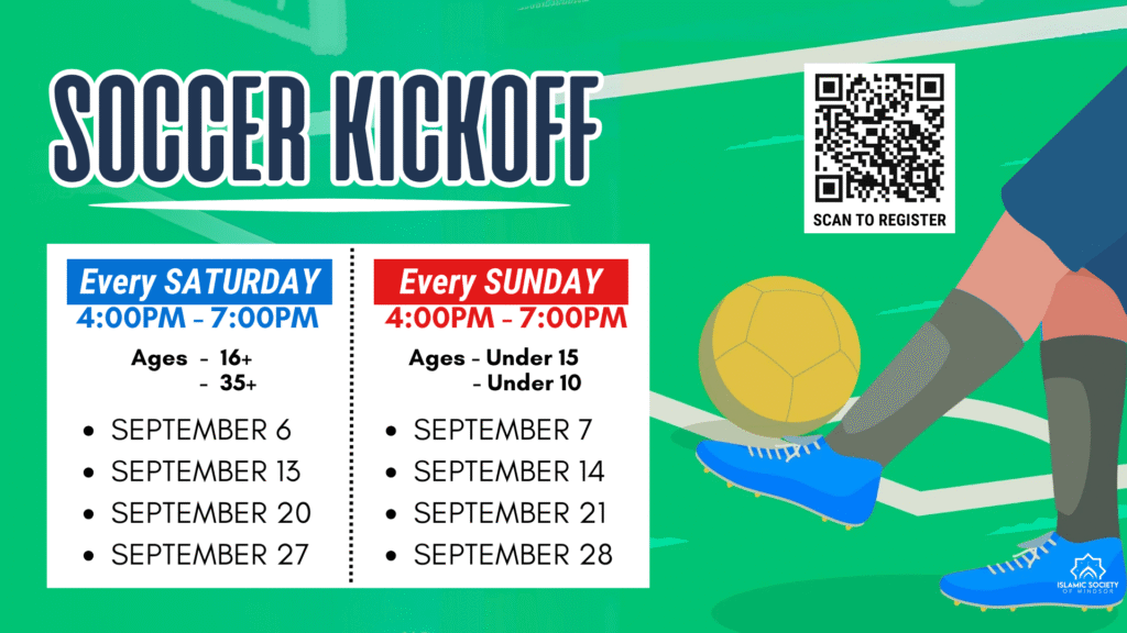 At the Islamic Society of Windsor, we believe in the power of physical activity to enhance both the body and the mind. Our sports programs are designed to promote physical fitness, teamwork, and spiritual well-being. Through fun, engaging, and inclusive activities, we aim to help children and adults develop a healthy lifestyle while instilling Islamic values of discipline, respect, and collaboration.
